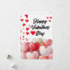 The top of the card showcases a bold and stylish "Happy Valentines Day" message in a clean, black brush-script font, accented by a vibrant red heart at its center. The left side of the card is decorated with a playful trail of floating red and pink heart confetti, adding a sense of movement and festivity to the design. Set against a crisp, textured white background, this card is a cheerful and heartfelt way to say "I love you" to a spouse, partner, or special someone.
