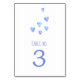 Watercolor Hearts | Blue Text Boy Baby Shower Table Number