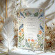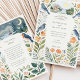 Celebrate your wedding with this romantic watercolor invitation inspired by the Finnish wilderness. The design features a serene lake castle scene framed by gentle mountains and pine trees under a glowing sun. Soft florals in peach, pale pink, and blue line the borders along with delicate foliage and sweet songbirds in cool greys and sky blues. The back side transitions into a dreamy night scene with a sailboat, moon, and stars above a dark forest lake, accompanied by detailed wildflowers and forest birds. Perfect for nature-loving couples or destination weddings in Helsinki, Finland.