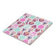 This pink and teal design features a geometric hexagon pattern.