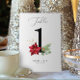 Theme Parties' holiday greenery table numbers design features hand-painted watercolor botanicals and a pretty red poinsettia. The modern simple design is set on a crisp white background and accented with matching gold speckles. #Christmas #Holidays #HolidayParty