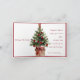 A beautiful, hand-painted watercolor design featuring a lush green Christmas tree decorated with red ornaments and topped with a gold star, sitting in a festive gift box tied with a red ribbon. The elegant white frame is accented with classic holly and red berries, creating a modern, yet traditional look.