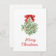 Watercolor Holly Mistletoe Red Bow Holiday Card