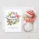 Watercolor Holly Wreath Happy New Year Photo Holiday Card