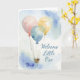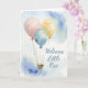A sweet and charming watercolor card for baby showers or new baby greetings. Features gentle pastel hot air balloons and the text 'Welcome Little One'. Perfect gender-neutral card.