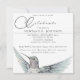A hand-painted watercolor hummingbird with stunning detail and subtle hues of aqua and rose decorates this unique, delicate and loving celebration of life invitation in classic black and white