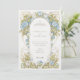 Rendered in a delicate painterly style, the florals and foliage echo the elegance of early 1900s decorative arts. The refined typography pairs classic serif fonts with subtle modern touches, while the initials and year are subtly integrated into the ornamental border. The back of the card complements the front with a mirrored floral crest featuring blue wildflowers and stylised tendrils, emphasising elegance and harmony. Ideal for romantic, garden, or classical wedding themes.
