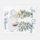 This custom Christmas or holiday blanket features a warm and cosy, snowy winter watercolor scene. Two cute little forest animals, a hedgehog and bunny, are ice skating among the trees.