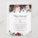 This watercolor illustrated fall elopement reception card is perfect for a modern post elopement party. The design features artistic hand-painted watercolor navy blue, burgundy, red, blush roses and peonies with elegant green leaves, inspiring the colourful idyllic autumn beauty.