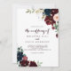 This watercolor illustrated fall floral wedding invitation is perfect for an elegant wedding. The design features artistic hand-painted watercolor navy blue, burgundy, red, blush roses and peonies with elegant green leaves, inspiring the colorful idyllic autumn beauty.