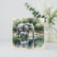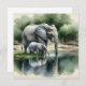 Elephant blank card. A sweet ai watercolor style illustration of a mama elephant and her baby drinking from a pond with a cute relfection.