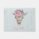Colourful watercolor illustration bull skull with flowers and arrows on background. Customisable doormats template