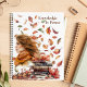 Notebook featuring an inspirational message of Knowledge is Power in the upper left corner with a watercolor illustration of a girl with wind swept hair and a stack of books among blowing swirling leaves in muted fall colour tones. In the background is a watercolor brush stoke in neutral tones to match illustrations. A notebook with an encouraging message for students starting a new school year. Additional styles and paper designs available. Illustration may need to be adjusted for varying sizes.