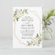 Watercolor Ivory White Floral Greenery Wedding Invitation Card includes ivory cream white roses and botanical greenery. Gold Geometric Frame.