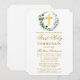 Elegant Watercolor Ivy Leaves Wreath First Holy Communion Invitation. Gold Cross.
