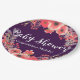 Custom bold watercolor floral design in jewel tones of purple and pink baby shower paper plates featuring a custom message.