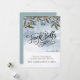 Watercolor jingle bells merry Christmas sleigh bells script and foliage against white snow and blue bells.