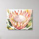 A stunning watercolor King Protea, the national flower of South Africa. Unique shape, pastel coral petals, and greenery — bold yet soft
