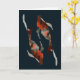 Hand drawn in watercolor abstract koi fish swimming design. red and navy blue colours.
