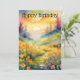 Birthday Watercolor Landscape with Buttercups and Sunset Holiday Card