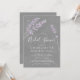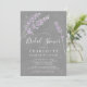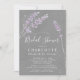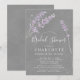 Watercolor summer lavender with watercolor spatter and a grey background. Elegant summer floral bridal shower invitation.