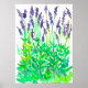 A pretty poster decorated with lavender flowers painted in several shades of purple watercolor with spring green stems and leaves.