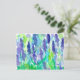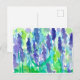 A pretty floral postcard featuring a garden of lavender flowers painted with watercolor accented with bright blue and green shades.