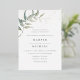 Elegant botanical greenery wedding invitation featuring a watercolor leaf and gold foil shimmer
