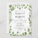 Watercolor Leaves Green Frame Engagement Party Invitation