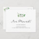 They feature simple watercolor greenery and script typography that says "I've Moved!".