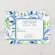 Blue and green watercolor leaf pattern with slit corner frame for wedding RSVP.