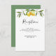 This reception information card has a summer green theme with watercolor lemons and green foliage. The colours and text can be edited.