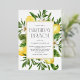 Invite guests to your event with this customisable birthday brunch invitation. It features watercolor frame of lemons and lemon blossoms with modern typography. Personalise this gold foil birthday brunch invitation by adding your details. This lemon birthday brunch invitation is perfect for summer birthdays.