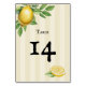 Watercolor Lemon Yellow Citrus Rustic Wedding Table Number