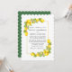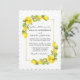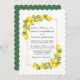 Modern Elegant Watercolor Lemons and Greenery on a Gold Frame Wedding Invitation Card. Scalloped Edges. Green Back.