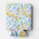 Watercolor lemons and blue leaves form a beautiful pattern.