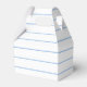 Stylish favour boxes with blue and white stripes and lemon sprig accents.