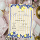 Watercolor lemons on yellow striped background. These baby shower invitations are easily customised for your event by simply adding your details.