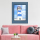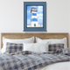 Nautical themed design with watercolor lighthouse decoration in dark blue frame. It is possible to change the background colour and to add different one to the design with your choice.