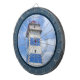 Nautical themed design with watercolor lighthouse decoration in dark blue frame. It is possible to change the background colour and to add different one to the design with your choice.