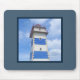 Nautical themed design with watercolor lighthouse decoration in dark blue frame. It is possible to change the background colour and to add different one to the design with your choice.