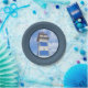 Nautical themed design with watercolor lighthouse decoration in dark blue frame. It is possible to change the background colour and to add different one to the design with your choice.