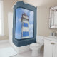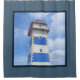 Nautical themed design with watercolor lighthouse decoration in dark blue frame. It is possible to change the background colour and to add different one to the design with your choice.