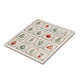 Creative watercolor line art, little squares filled with simple doodly Christmas, ornaments and decorations, in xmas colours. Cartoon elements in different variants, stockings and bubble ornaments, Christmas wreaths in soft colours