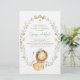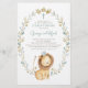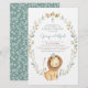 Invite family and friends to your christening event with this customisable invitation. It features watercolor illustrations of a cute baby lion price and a foliage wreath with a matching pattern. Personalise by adding name, date, time, venue and other event details. This lion christening invitation is perfect for baby boy christenings.