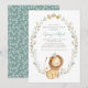Watercolor Lion Prince First Birthday Party Invitation. A customisable kids birthday party invitation featuring watercolor illustrations of foliage and stars frame, foliage pattern and a baby lion prince. This whimsical birthday invitation is perfect for baby boy birthdays.