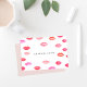 Chic flat notecards for your lip colour distributor business feature your name or business name surrounded by watercolor lips illustrations in shades of pink, peach, violet and red. Cards reverse to solid blush pink for your handwritten message; or, add a custom pre-printed message using Zazzle's customisation tools.
