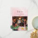 Watercolor lotus on a pink watercolor background. With a custom wedding thank you text, your photo and your names and wedding date.