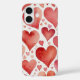 Romantic minimalist phone case featuring hand-drawn watercolor hearts in soft red, pink, and coral on white background. Perfect gift or stylish accessory for love-inspired designs.