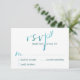 A darling RSVP card featuring the word 'rsvp' set in a modern watercolor calligraphy typeface and a watercolor heart and simple, clean typography on a white background. A variety of teal blues colour palette. Simple & sweet. Design by The Spotted Olive™.
